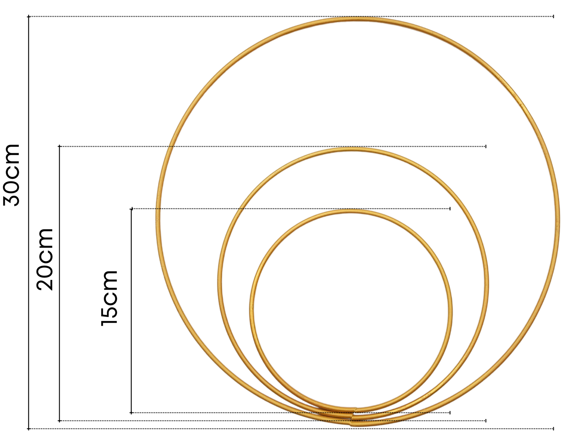 Anneaux en métal (couleur or) en 3 tailles: 15cm, 20cm, 30cm.
